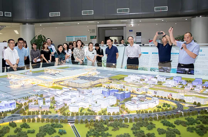 与会大咖先后到政务服务大厅、东航-赛峰起落架深度维修项目和航投大厦参观考察,了解空港新城整体发展、重点项目建设、T5站前综合商务区规划、临空产业园运营、JMRH产业园招商、自贸区建设以及综合保税区申报等情况。