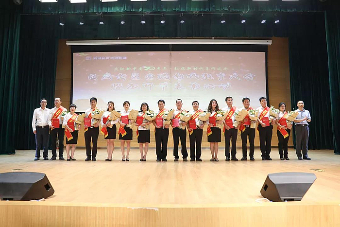 空港新城党委书记、管委会主任贺键出席并讲话,西咸新区教育卫体局党委书记、局长张海明和空港新城党委、管委会、集团公司领导何向东、蒙彬斌、刘功毅、胡新建、韩娜、杨博、倪忠明、张绍春参加表彰大会并为获奖集体及个人颁奖。