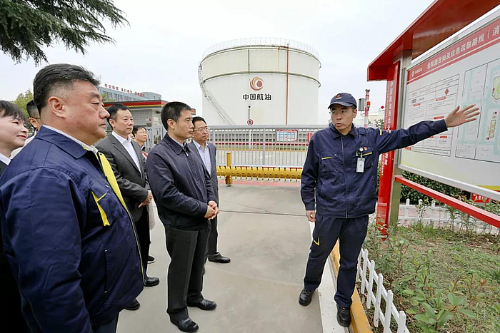 在中国航油机场油库,徐大彤了解了油库规模、运输存储、安全管控和供应保障情况,询问了保税航油工作进展,希望油库确保质量、供应量,为建设西安国际航空枢纽、发展枢纽经济贡献力量。