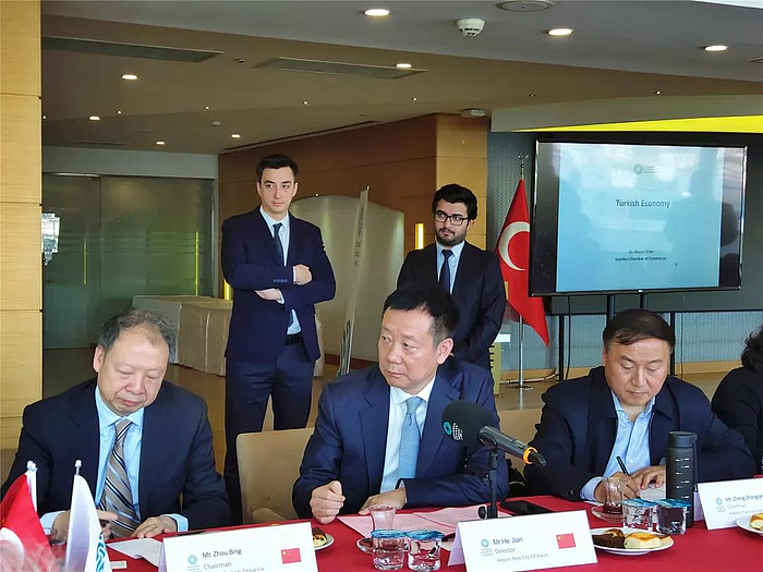 丝路航空项目公司、土耳其航空公司、MNG航空公司代表现场与贺键就共建“一带一路”特色馆和临空产业园区进行商讨,为中土经贸往来和文化交流开启新窗口。