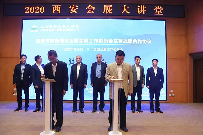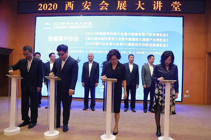 为加快建设“一带一路”国际会展名城,加速推动西安市会展经济发展,在此次大讲堂上,西安商务局与全国会展工作委员会签订战略合作协议,将围绕展会筹办、会展研究等领域全面展开合作。西安市商务局、空港新城管委会与西安市会展行业协会签订战略合作协议,将在促进空港会展业发展上开展深度合作。西安市商务局、空港新城管委会与中国会展杂志社就联合举办《中国国际会展领袖论坛》签署协议。同时,2021中国教育创新大会暨中国国际现代教育博览会、第三届中国抗衰老大会暨中国国际大健康产业博览会、5G中国产业发展大会暨5G通信技术创新成果展览会等一批精品会展项目签约落地。