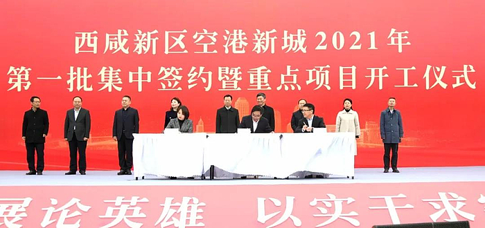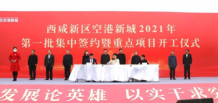 3月8日,空港新城举行2021年第一批集中签约暨重点项目开工仪式。仪式现场,共集中签约项目30个、开工项目17个,总投资375亿元,西咸新区党工委委员、空港新城党委书记、管委会主任贺键出席仪式并宣布开工,西咸新区党工委委员、管委会副主任陈辉应邀出席仪式。