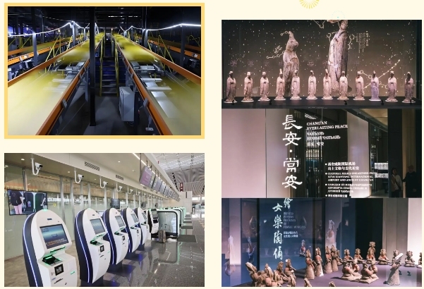 走进T5航站楼,“新”体验扑面而来。在值机环节,全自助的智慧行李托运系统让排队等待成为过去,科技感十足。但“新”不止于效率。取完登机牌,移步至独具特色的西部机场博物馆,瞬间从现代航空的节奏中穿越千年——周秦的青铜、汉唐的陶俑,静静诉说着脚下这片土地曾见证的盛世风华。这种“刚下登机口,便入历史卷”的奇妙交融,让旅途变成了一场文化邂逅。