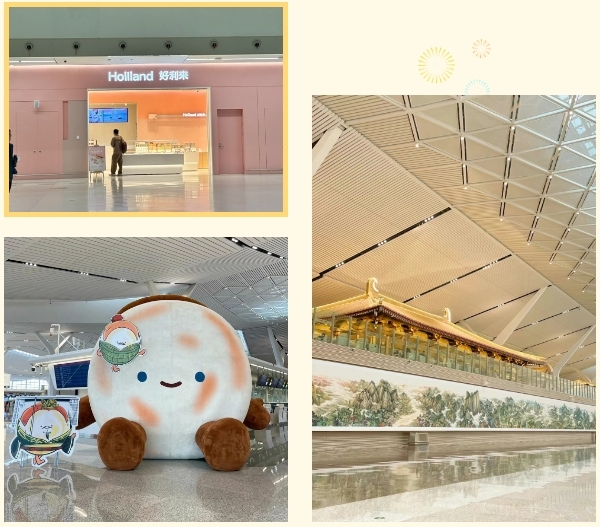 T5航站楼的设计巧妙地将仿古建筑元素融入现代商业空间。你可以在雕梁画栋的景观旁,买一杯网红咖啡;逛完文创店铺,转身就能看到一幅展现长安气象的壁画。历史元素与潮流商铺的完美融合,让候机时光不再是枯燥的等待,而成为可逛、可品、可拍的沉浸式休闲体验。这座枢纽,正从一个“途经地”,焕新为一个值得停留和品味的“目的地”。