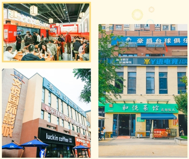 过去,社区周边的商业相对零散、单一。如今,像花园里商业街和幸福里商业街这样的综合性商业区,正成为社区活力的心脏。它们把曾经散落的商户集中起来,精心规划,形成了 “吃喝玩乐购”一站式的休闲聚落。