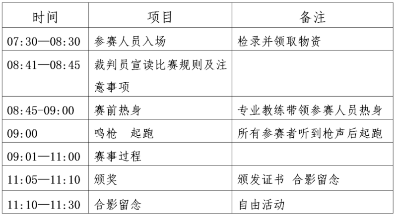 (二)凡在规定时间内跑完各项目全程的均发完赛奖牌;