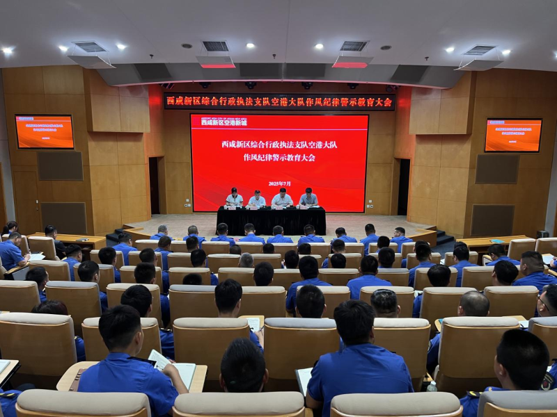 7月31日,西咸新区综合行政执法支队空港大队(以下简称“综合执法大队”)组织召开作风纪律警示教育大会。空港新城党委委员、管委会副主任刘建峰出席会议并讲话,大队全体人员参会。