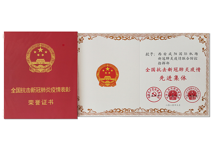 9月8日,全国抗击新冠肺炎疫情表彰大会在北京人民大会堂隆重举行,西安咸阳国际机场新冠肺炎疫情联合防控指挥部被授予全国抗击新冠肺炎疫情先进集体荣誉称号。
