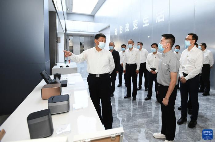 随后,习近平考察了极米光电有限公司。他走进公司展厅和生产车间,了解企业加强自主创新、产品研发销售、带动就业和当地支持民营经济发展、出台纾困帮扶政策等情况。习近平强调,推进科技创新,要在各领域积极培育高精尖特企业,打造更多“隐形冠军”,形成科技创新体集群。