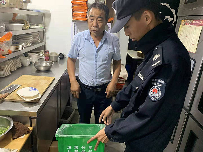 9月18日,城市管理与交通运输局以突击检查的方式,在辖区开展生活垃圾分类专项执法行动,对生活垃圾分类收集容器配置、生活垃圾分类投放等情况进行检查。在突击检查中,城管交通局执法人员向空港花园社区重庆火锅店下发《限期整改通知书》,这是自9月1日起实施《西安市生活垃圾分类管理办法》以来,空港新城开出的第一张生活垃圾分类《限期整改通知书》。