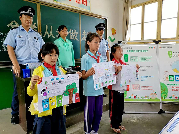 截至目前,空港新城35所学校、4家卫生院已按照“四分类要求”配齐垃圾分类收集容器、宣传展板、投放指南等,并将垃圾分类工作纳入教学计划,学校、卫生院生活垃圾分类覆盖率达到100%,知晓率和参与率达到100%。