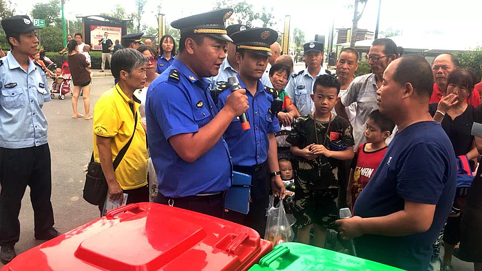 “同志,您好!我们是空港新城城市管理与交通运输局的执法人员,这是我们的执法证。由于您未按照生活垃圾分类管理办法进行分类投放垃圾,违反了《生活垃圾分类管理办法》,现对您处以一百元以上二百元以下的罚款。”这是发生在空港花园社区的一场关于“垃圾分类”的模拟执法演练,让群众了解了生活垃圾分类处罚的全过程,知晓了不按要求实行垃圾分类将面临的处罚,起到了良好的宣传作用。
