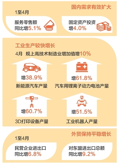 外部环境不确定性上升的背景下,4月份中国经济的表现格外引人关注。最新发布的成绩单,再次彰显了中国经济强大的“抗压能力”,为发展注入底气与信心。