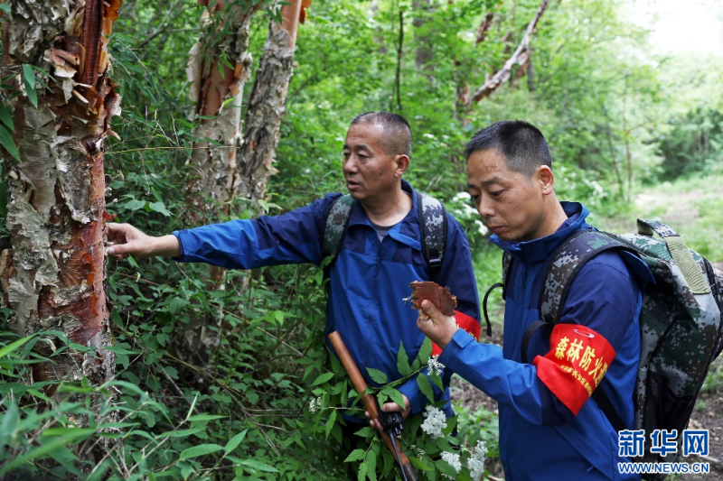 护林员正在进行树木的有害生物调查。新华网 王智超 摄