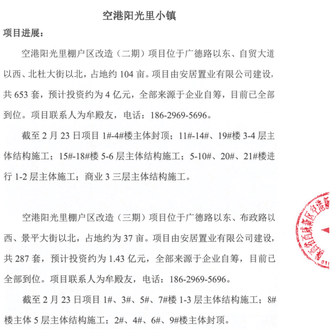 空港新城2018年2月份保障房——阳光里小镇项目形象进度