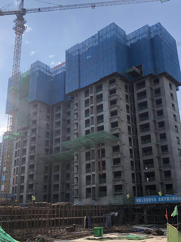截至7月15日项目1#楼主体施工至十五层;2#、3#楼主体封顶,进行二次结构施工;4#楼主体施工至十五层,5#楼主体施工至十八层,6#楼主体施工至十六层。
