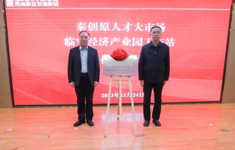 仪式上,西咸新区党群工作部、社会事业服务局、行政审批局负责同志分别介绍了法治化营商环境建设情况、“人社工作进园区”活动开展情况及政务服务驿站相关情况。随后,与会嘉宾共同为“秦创原人才大市场临空经济产业园工作站”“秦创原公共法律服务站”“劳动争议调解委员会”“政务服务驿站”“生产力要素保障超市”等综合服务工作站揭牌。