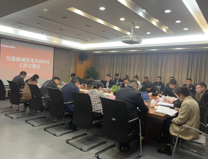 空港新城党委副书记、管委会副主任胡新建主持,新城优化提升营商环境工作领导小组各成员单位相关负责同志参加。
