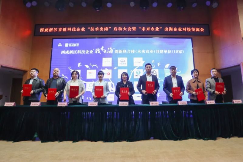 现场,湄南高科、中科西光、质子汽车、塘马慧感、农链科技、中茂绿能、秦草生态等18家科技企业共同签订西咸新区科技企业“技术出海”创新联合体(未来农业)共建协议。空港新城党委书记、管委会主任张蔚向联合体发起单位——湄南高科董事长卢威授旗。该联合体涵盖了智慧农业、生态修复、新能源装备、物联网、新材料等核心领域,将以技术为纽带,组团拓展中东、中亚等新兴市场。